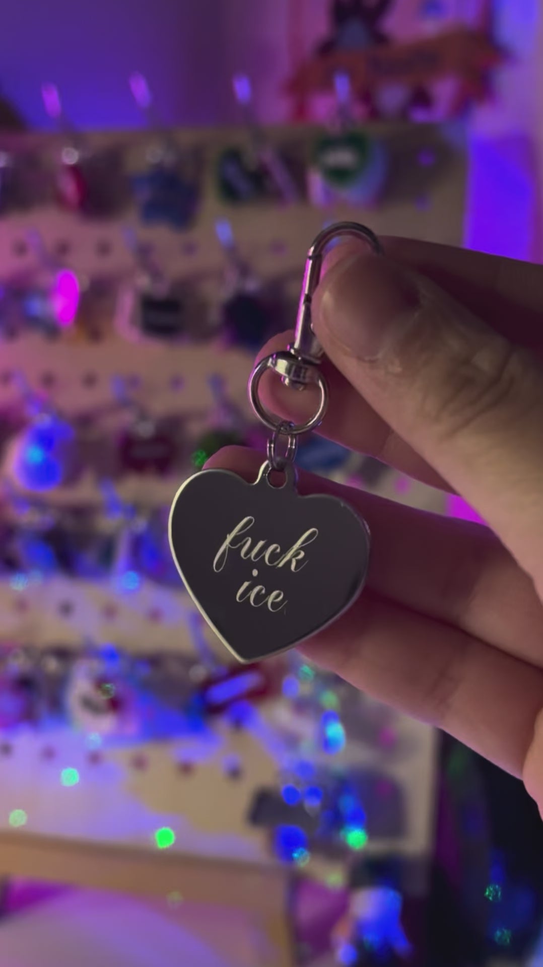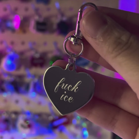 One sided laser engraved mirror polished stainless steel keychain. Back side is blank and matte.